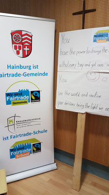 Rektor Eckhard Finger stellte in einer Podiumsdiskussion heraus, was die Kreuzburgschule besonders motiviert hat, Fairtrade School zu werden: „In einem Projekt in der Projektwoche 2015 wurde die Herstellung von Grabsteinen auf unseren Friedhöfen thematisiert. Diese werden zu einem erheblichen Anteil mit Kinderarbeit hergestellt. Diese Erkenntnis und der Wunsch, auch in anderen Bereichen die Lebensbedingungen besonders für Kinder zu verbessern, motiviert uns noch heute, dass wir uns aktiv für den fairen Handel einsetzen.“